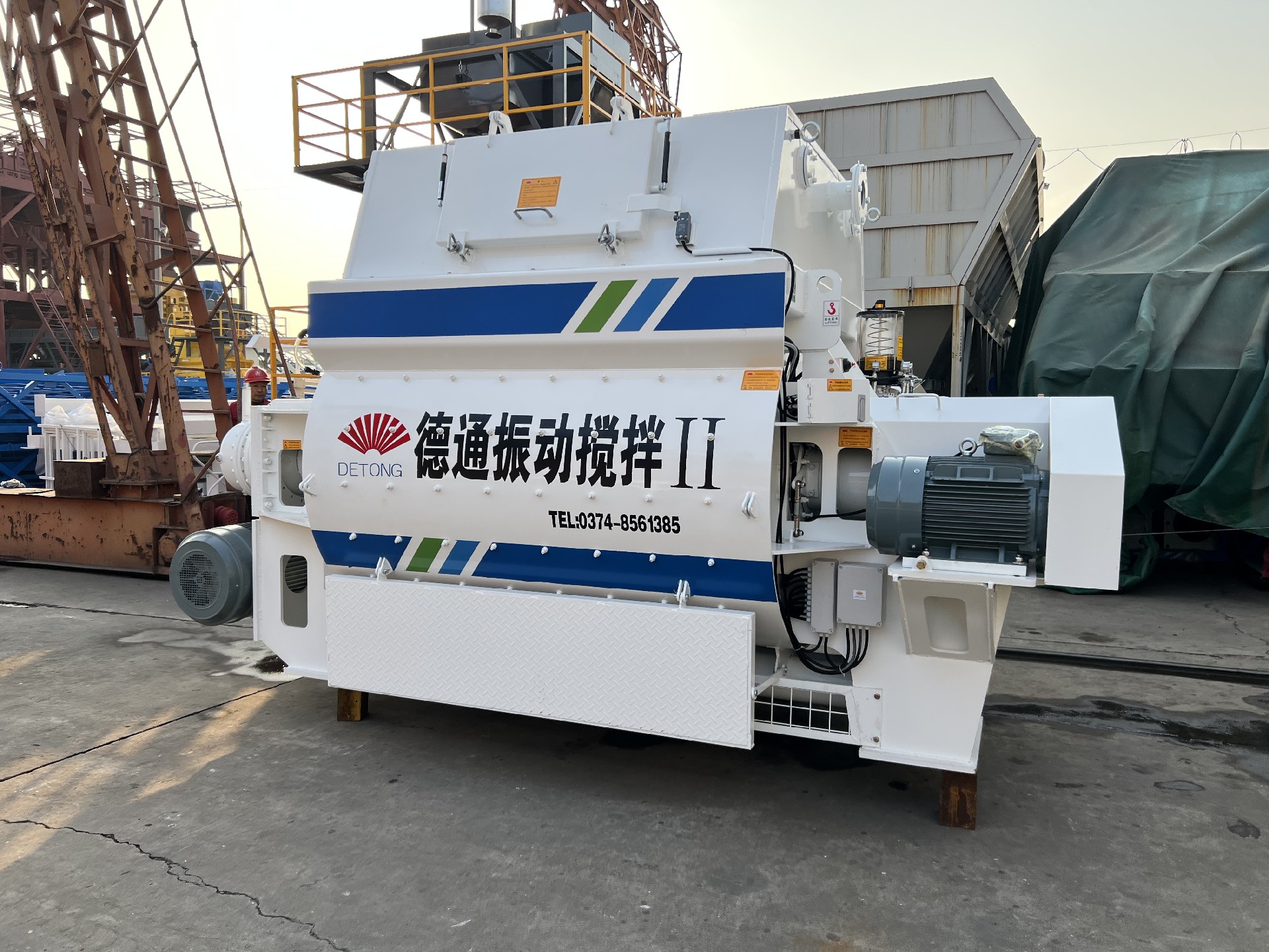 近年來,在高速公路或機場工程建設(shè)中,許多業(yè)主單位要求采用振動式混凝土攪拌機,振動式混凝土攪拌機以攪拌軸和葉片作為振動源,運用強制攪拌和振動強化相結(jié)合使混合料顆粒的運動速度增大,并且增加了有效碰撞次數(shù),增強了骨料與水泥石間的界面粘結(jié)強度,提高了混凝土強度,國內(nèi)目前比較知名的品牌,就是許昌德通振動式攪拌機,上個月公司在蘭太高速簽訂的兩套雙120型攪拌站,就采用了兩臺振動式攪拌機,今天終于到貨了,讓我們來看一下振動型攪拌機的風采
