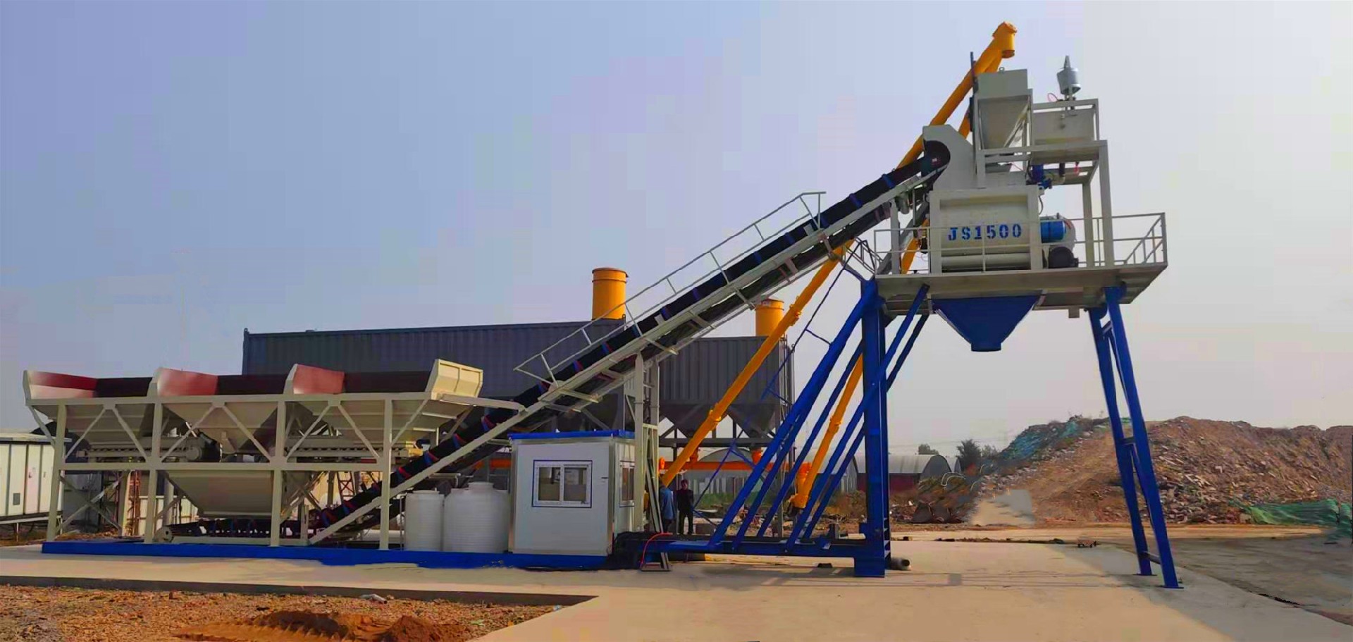 MHZS90混凝土攪拌站是指配備JS1500強(qiáng)制式雙臥軸混凝土攪拌主機(jī)、PLD2400骨料配料機(jī)、皮料輸送機(jī)等配件的混凝土攪拌站,生產(chǎn)能力為90m3/h,卸料高度為3800mm.